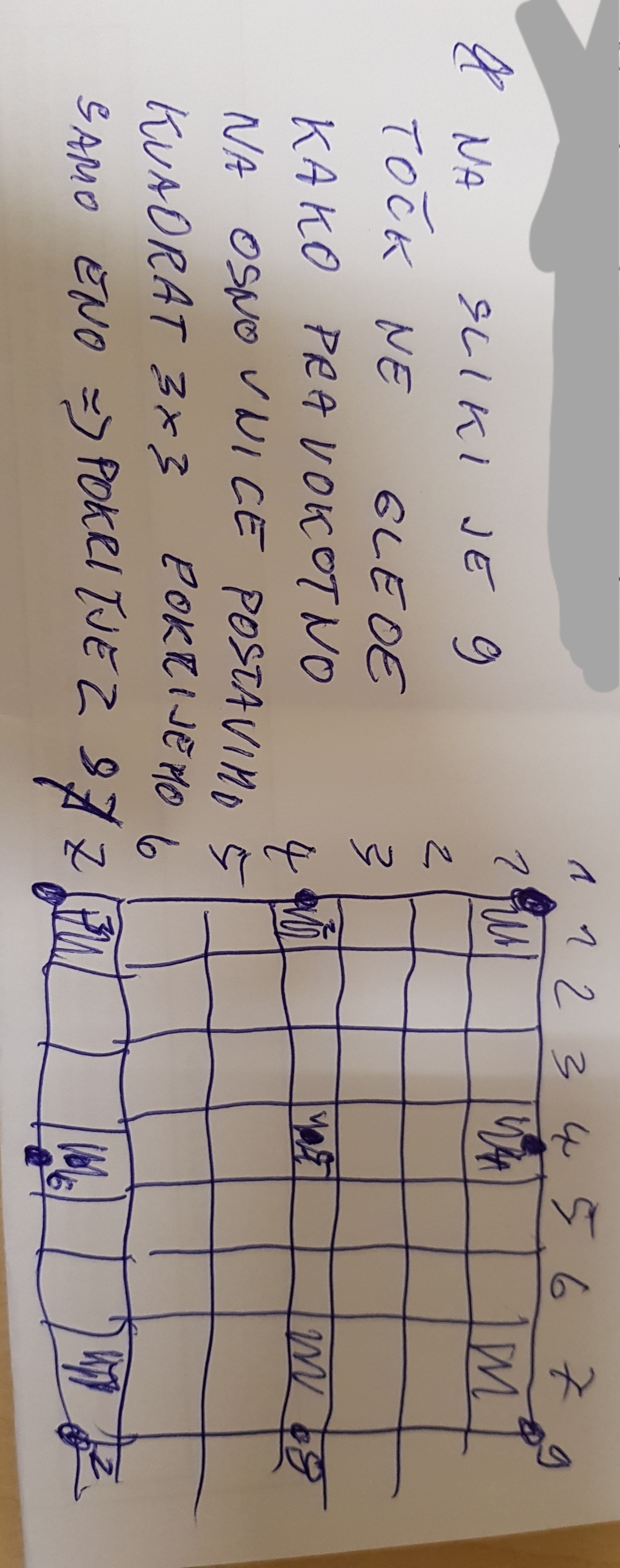 Namig 1: Primer 3x3 bi morali hitro rešiti zaradi ene stare naloge o 4ih konjih. Ni pretežko dognati, da se na tablo 3x3 oz. 4x4 ne da postavit več kot 4 konje (premislite sami). Tisti, ki jim programiranje ni tuje, bi lahko našli odgovor tudi za tablo 5x5, a za velikost 20x20 kar tako le ne bo šlo.Namig 2: Če postavlja Bojan svoje konje na bela polja, mu Anita lahko nagaja tako, da počene enako (tudi ona postavlja svoje kamne na bela polja), vendar lahko Bojan na ta način postavi na tablo 100 konjev (oz. v splošnem vsaj \(n^2/4\)). -