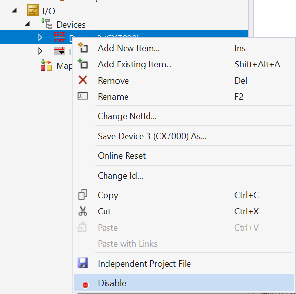 I/O→Devices→Device 3 (CX7000). - In the context menu, click
