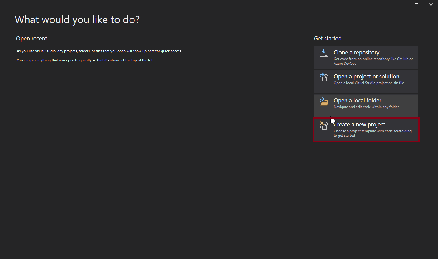 Creating a project in Visual Studio