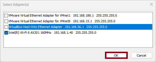 Broadcast Searchbutton to search for devices. - A window will appear where you select the network interfaces through which you want to search for devices and click