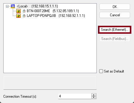 Search (Ethernet). - A dialog for searching controllers will open; press the