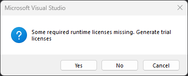 Some required runtime licenses missing. Generate trial licenses., clickYesand enter the CAPTCHA code, and then clickOK.