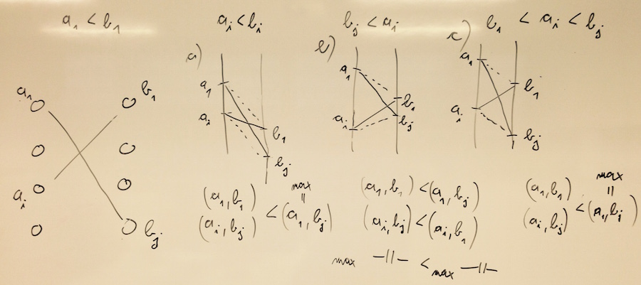 Drugič, zahteva, da znamo dokazati, da tako res dobimo najmanjšo možno razliko. Dokaz (hvala, Tomaž Hočevar!) je narisan na sliki, razmislite pa ga sami.