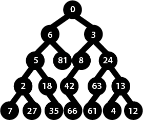 številke sob, vrednosti pa sobe, v kateri pridemo po levi in po desni poti.